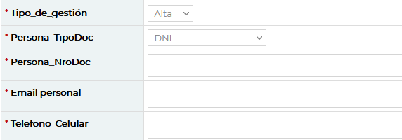 Datos requeridos = Aparecen al final del formulario y deben completarse en forma obligatoria.