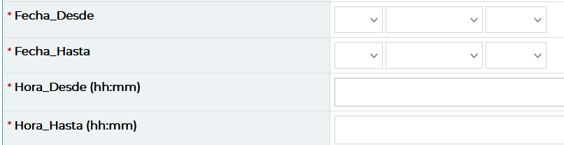Datos requeridos = Aparecen al final del formulario y deben completarse en forma obligatoria.
